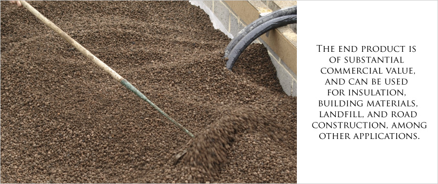 The utmost important thing to pay attention to is the fact that the waste actually becomes purified in our process and with our technology. Unlike any other waste treatment method currently in use, our method has the unique feature of first purifying the waste and simultaneously, during the process, converting the waste into a re-usable, non-leachable, non-toxic end product, where heavy metals are encapsulated inside the end product, (light-weight clay granules), suitable for a multitude of purposes.