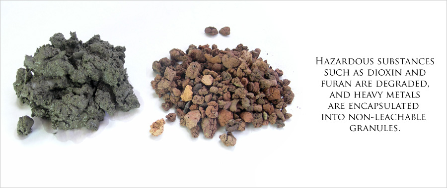 Hazardous organic substances like dioxins and furans are degraded and heavy metals are encapsulated into the granules, thus becoming non-leachable.
